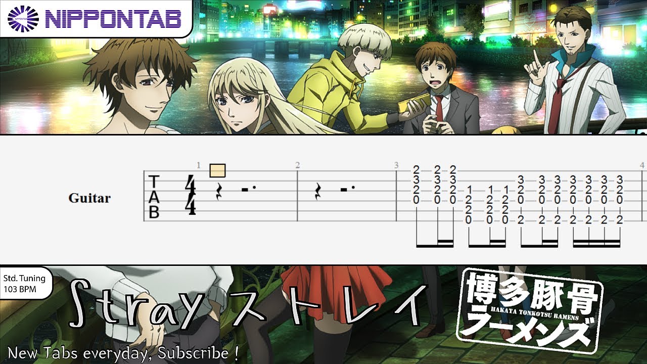 Kishida Kyoudan & The Akeboshi Rockets の「Stray ストレイ 」- Hakata Tonkotsu Ramens 博多豚骨ラーメンズ OP Opening の ギター guitar tab 譜 & tutorial です