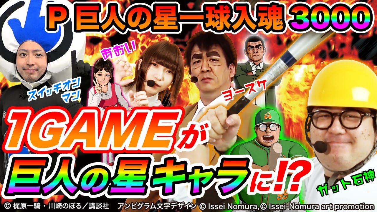 2021年7月登場「P巨人の星一球入魂3000」を、巨人の星のキャラクターに扮した1GAME TVのあおいさんとガット石神さんが打ってみた!。