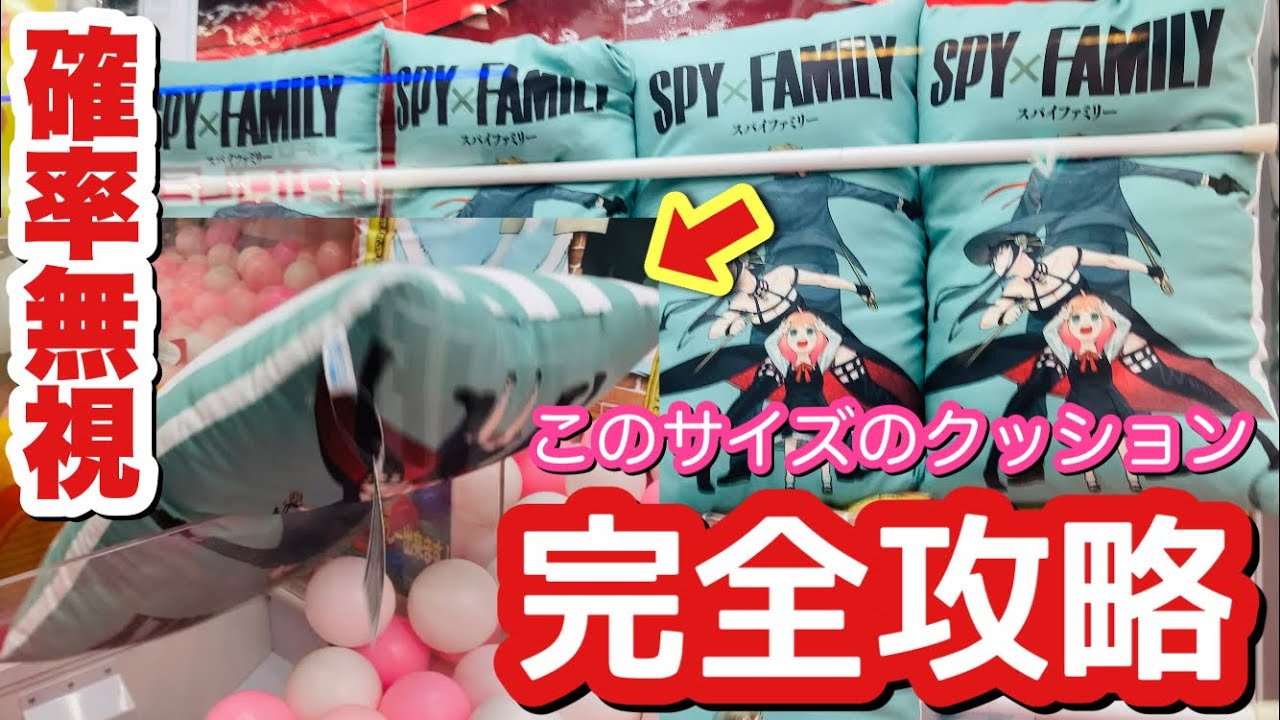 今回は、確率機でクッションを取ってみました!人気の「SPY×FAMILY」のプライズです!まだ結構珍しい景品なのでは!?ということで取ってみました。鬼滅の刃や呪術廻戦でも同じサイズのクッションがあるので応用できそうです!