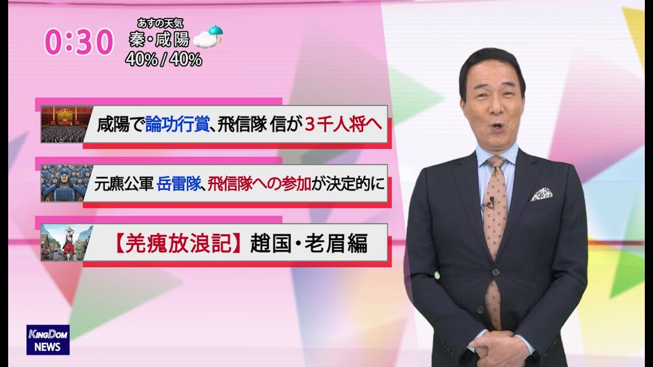 TVアニメ「キングダム」合従軍編の蠢く戦況や最新情報を元NHKアナウンサー宮本隆治がお届け!