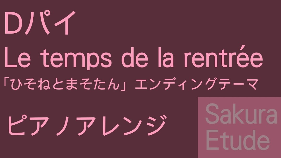 「ひそねとまそたん」のエンディングテーマ「Le temps de la rentrée ~恋の家路(新学期)~」のピアノアレンジです。