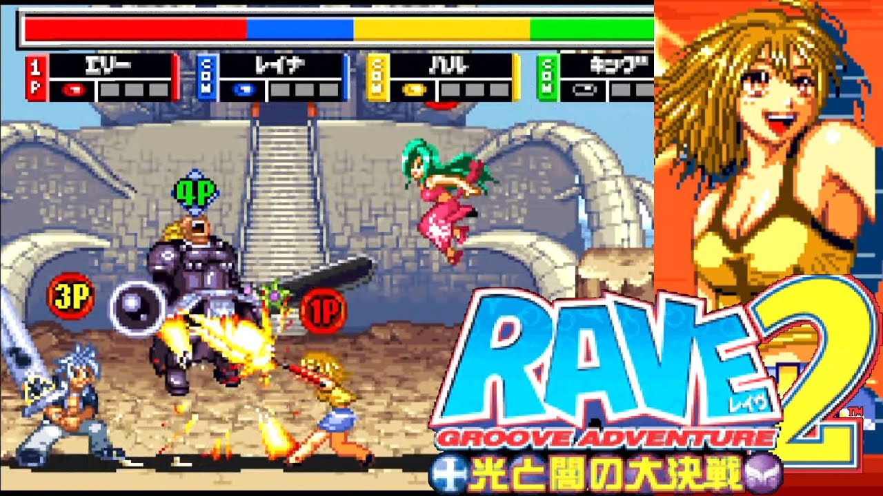 週刊少年マガジンで連載されていた人気漫画『RAVE』のゲーム化(2002年発売、コナミ)。最大4人で戦う乱闘系の対戦アクションゲーム。体力ゲージが無く、必殺技でトドメをさすと勝利するのが特徴。今回はエリーでクリア。
