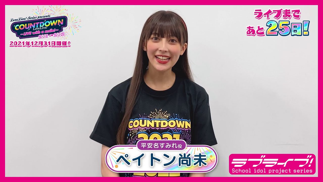 平安名すみれ役・ペイトン尚未による、「LoveLive! Series Presents COUNTDOWN LoveLive! 2021→2022 〜LIVE with a smile!〜」開催25日前カウントダウンコメント動画です。