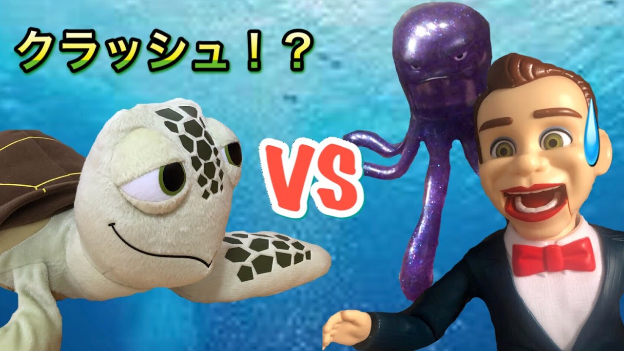 ファインディングニモでお馴染みの海がめのクラッシュがセカンドチャンスアンティークショップでベンソンたちとバトル!