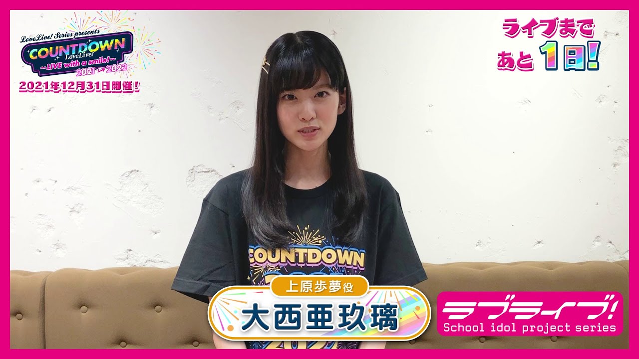 上原歩夢役・大西亜玖璃による、「LoveLive! Series Presents COUNTDOWN LoveLive! 2021→2022 〜LIVE with a smile!〜」開催1日前カウントダウンコメント動画です。