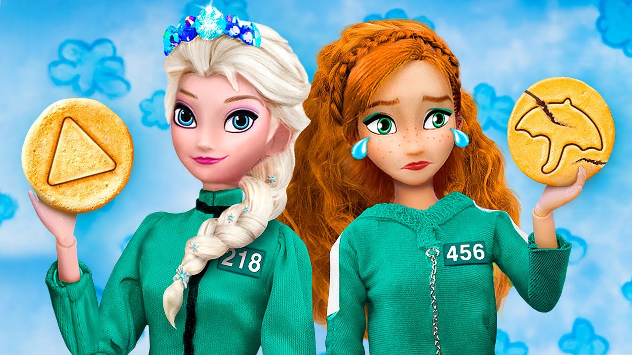 ディズニーのお人形たちは人気な流行りものについて行ってるのよ。今日はエルサとアナがイカゲームで遊んじゃうの!私たちの新着動画で面白いアイディアを見てね!