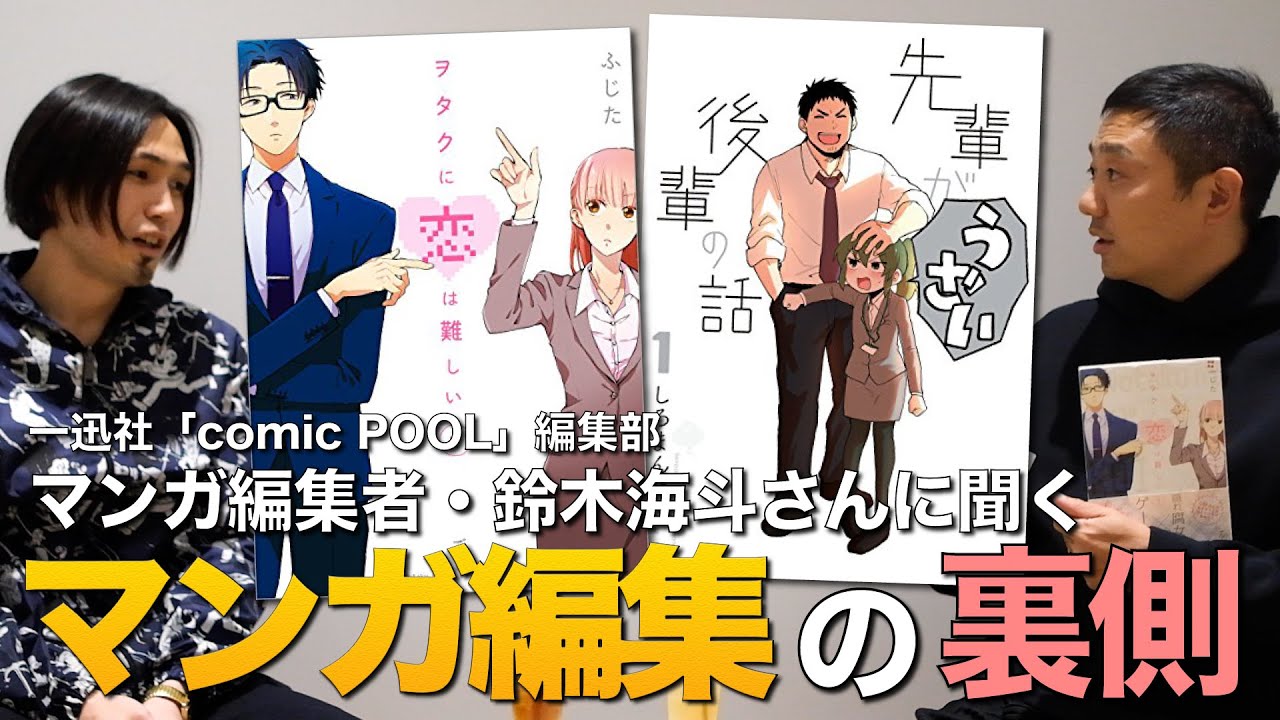 今回は、『ヲタクに恋は難しい』『先輩がうざい後輩の話』など、映像化やアニメ化になった話題作を担当する、一迅社「comic POOL」編集部の鈴木海斗をゲストにお呼び、マンガ編集の裏側について話を伺いました!
