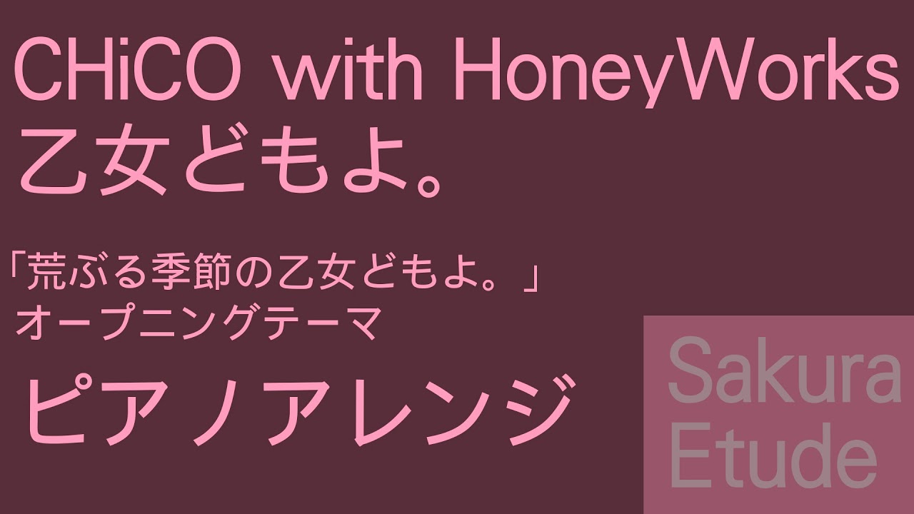 This is the piano version of Araburu Kisetsu no Otome-domo yo OP / Opening – Otome-domo yo.