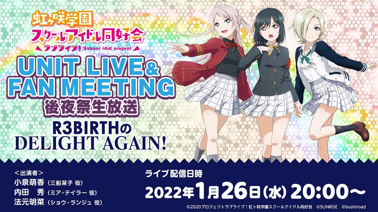 「ラブライブ!虹ヶ咲学園スクールアイドル同好会」キャストによる生放送の様子をライブ配信いたします。