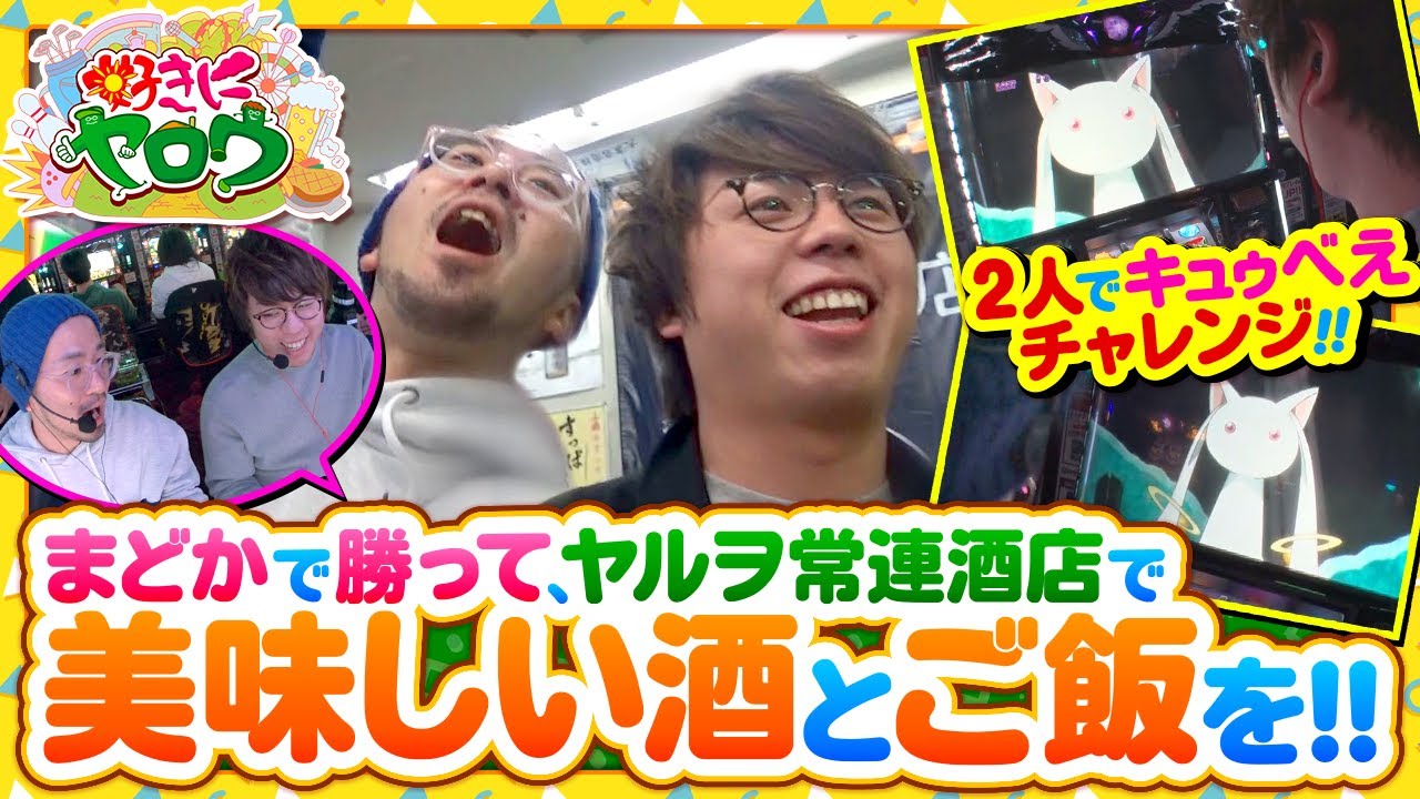 挙動は良さげだが、まとまった出玉に繋がらず下皿モミモミが続く2人!!大量出玉へ繋がるきっかけが欲しい2人にキュゥべえチャレンジが出現!!まどかで勝って祝杯をあげることは出来るのか!?