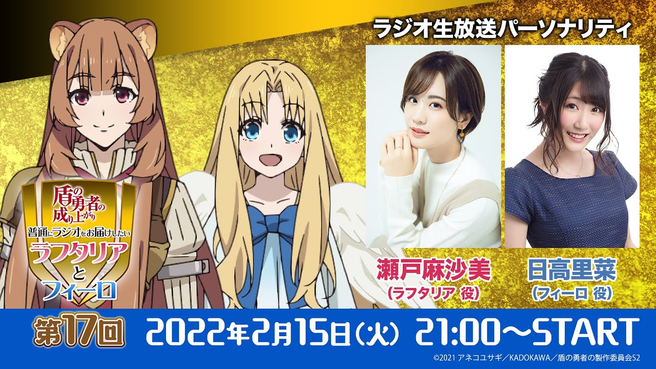 ラフタリア役・瀬戸麻沙美さん、フィーロ役・日高里菜さんの二人が、前回に引き続き生放送でラジオをお届け!