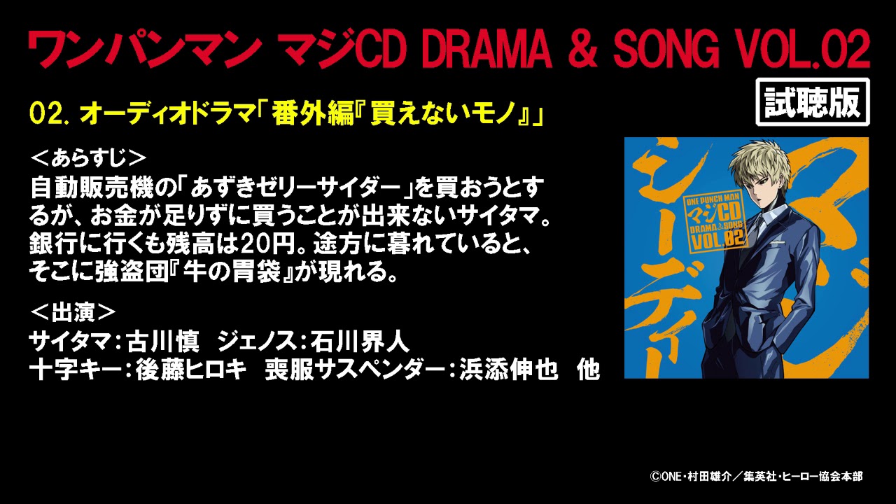 TVアニメ第2期プロジェクト第1弾『ワンパンマン マジCD DRAMA & SONG VOL.02』(2017/12/20発売)収録