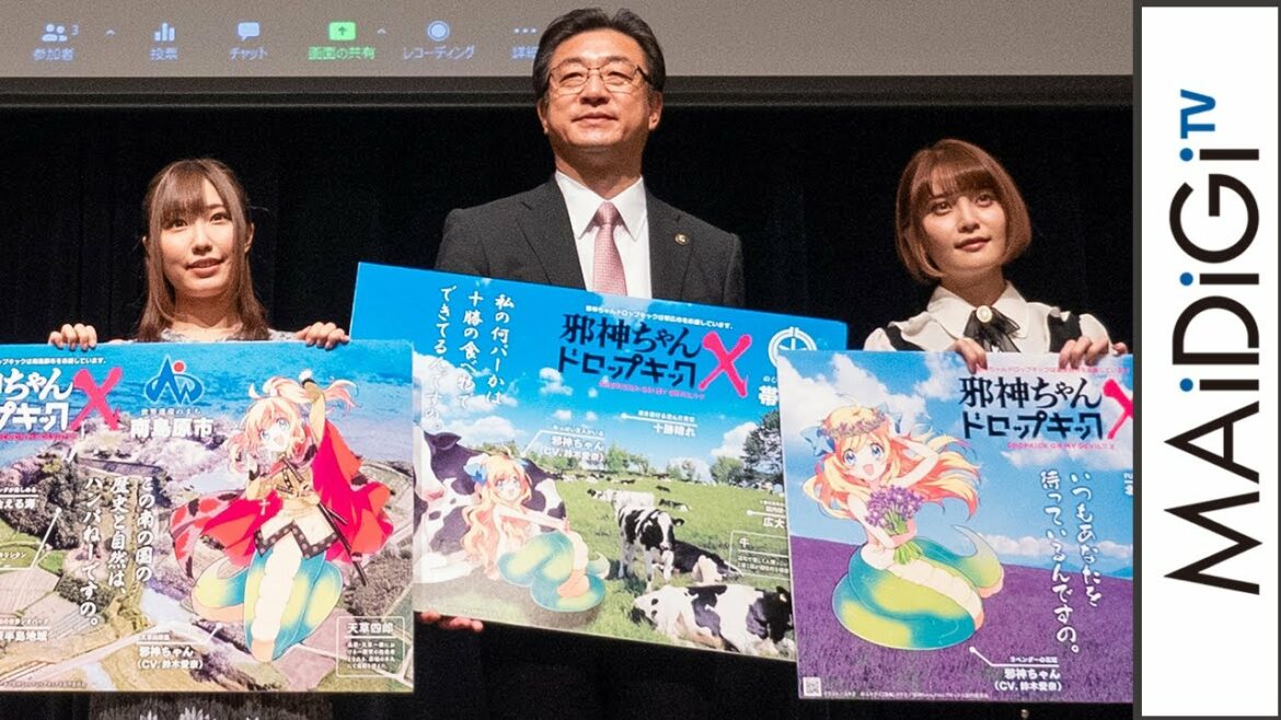 発表会には、主人公の邪神ちゃん役の鈴木愛奈さん、花園ゆりね役の大森日雅さんも登場した。