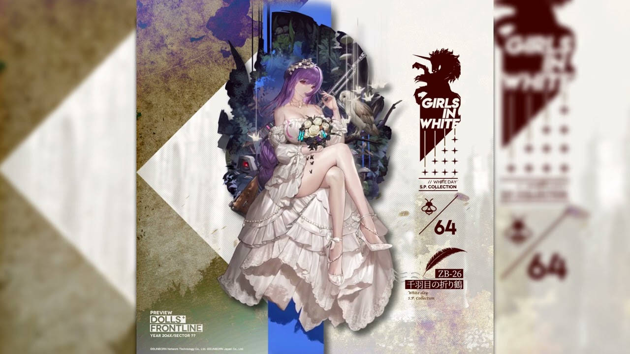 人形達が花々に彩られたウェディングを纏った新スキンテーマ「彼女からの手紙」より、ZB-26専用スキン『千羽目の折り鶴』のLive2Dプレビューです!