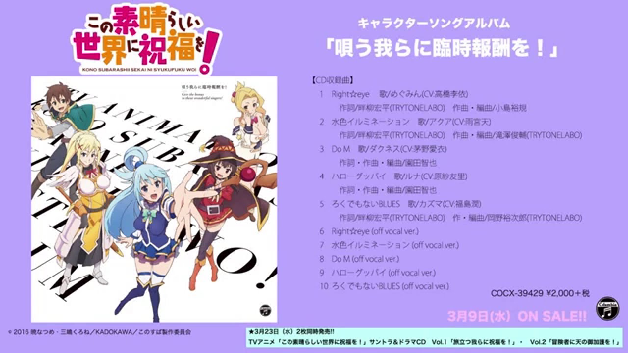 アルバム『TVアニメ「この素晴らしい世界に祝福を!」キャラクターソングアルバム「唄う我らに臨時報酬を!」』