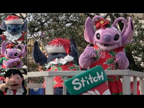 This video is 2018 Tokyo Disneyland Christmas parade, Disney Christmas Stories at stopping Lilo, Stitch and Angel.