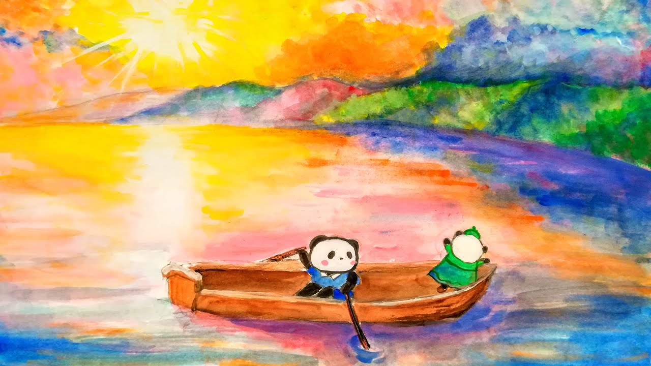 ボートを漕いでいるのが杏奈風のお買いものパンダ、立っているのがマーニー風の小パンダです。
