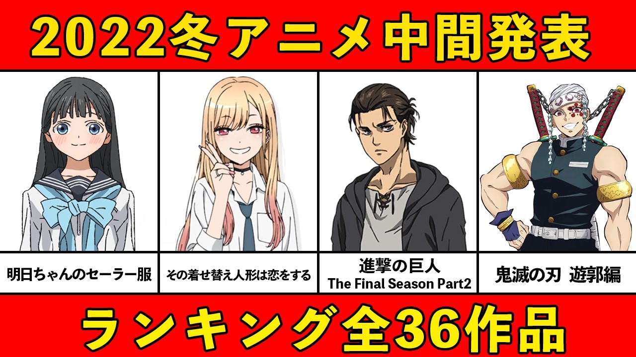 今回は2022年冬のおすすめアニメを中間時点での評価C~Sにしてランキングで36作品紹介です!