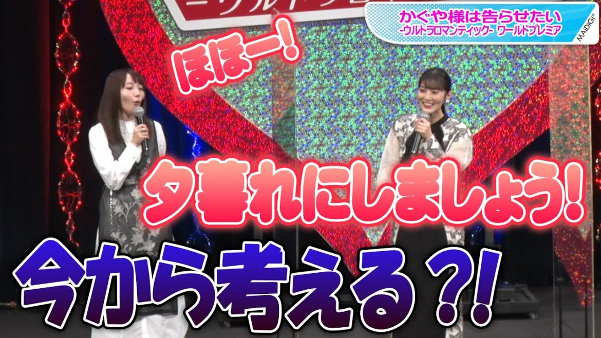 イベントには、白銀御行役の古川慎さん、石上優役の鈴木崚汰さん、藤原千花役の小原好美さん、伊井野ミコ役の富田美憂さんが登場した。また、歌手の鈴木雅之さん、ガールズバンド「Silent Siren(サイレントサイレン)」のすぅさんがオープニングテーマ(OP)「GIRI GIRI」、アイドルグループ「℃-ute(キュート)」の元メンバーで歌手、モデルとして活躍している鈴木愛理さんがエンディングテーマ(ED)「ハートはお手上げ」を披露した。