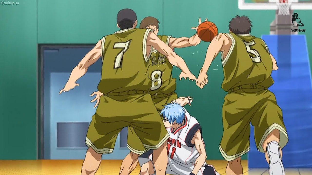 黒子のバスケ ! Kuroko’s Basketball – セイリンハイvs泉真館高校、黒子は3人の対戦相手によってブロックされました|Kuroko blocked by 3 opponents