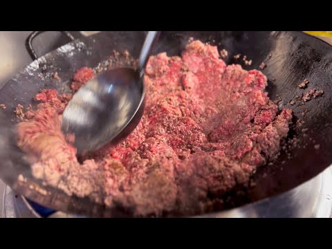 ≪食材 調味料≫ 炸醤(牛挽肉、摺り下ろしにんにく、蝦米入り朝天辣椒、紹興酒、醤油、甜麺醤)、卵、白飯、塩、胡椒、韮