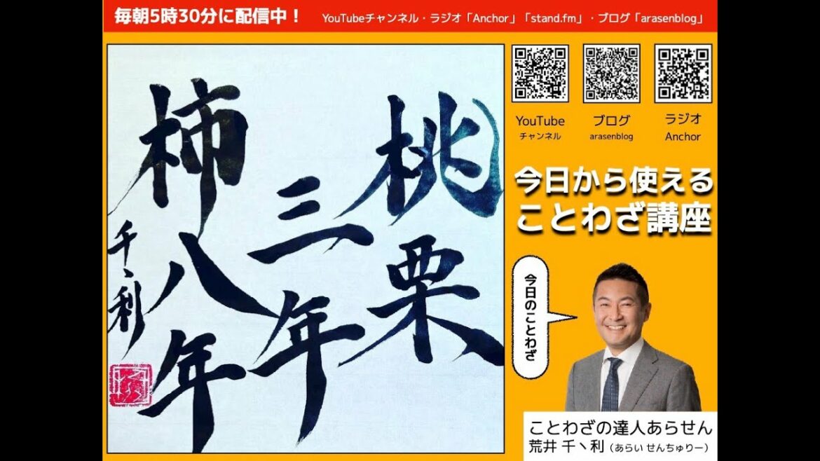 「桃栗三年柿八年」の「ズバリの意味」「由来」「使い方」などを、ことわざの達人あらせんがわかりやすく解説します。