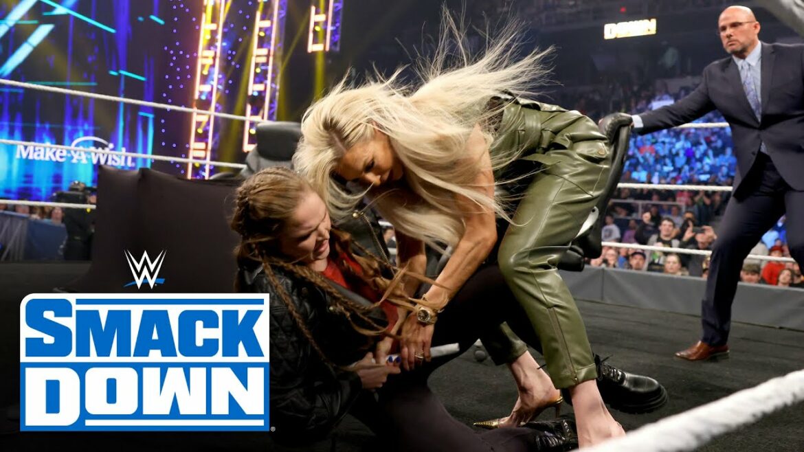 SmackDown Women’s Champion Charlotte Flair pulls out a surprise for Ronda Rousey as things break down during the contract signing for their “I Quit” Match at WrestleMania Backlash. Catch WWE action on Peacock, WWE Network, FOX, USA Network, Sony India and more.