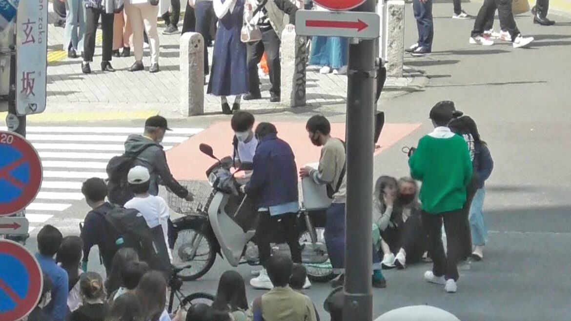 渋谷駅前スクランブル交差点でスーパーカブが歩行者はねる人身事故発生!駅前交番より3名の警察官、PA連携でポンプ車1台、救急車2台が出動