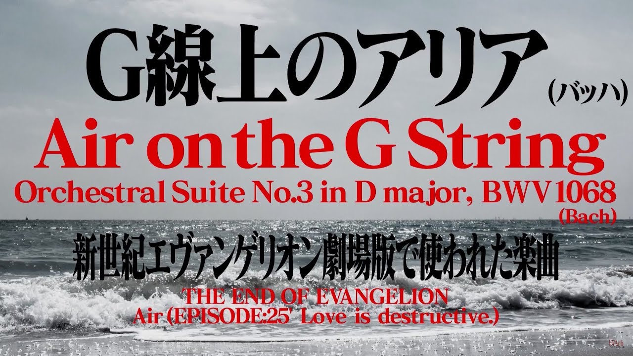バッハ「G線上のアリア」 Bach – Air on the G String (Orchestral Suite No. 3 in D, BWV 1068) 映画「新世紀エヴァンゲリオン劇場版 Air/まごころを、君に」 第25話Air“アスカ対エヴァ量産機戦”で流れた楽曲です 【関連する動画】 【クラシック音楽】「メサイア」ハレルヤ・コーラス(Handel) 【クラシック音楽:交響曲第9番】エヴァ24話・Qで流れたパート 25AIRAir auf der G-SaiteClassic Musicevangelionorchestralアスカエヴァクラシックバッハヱヴァンゲリヲン新劇場版新世紀エヴァンゲリオン新世紀エヴァンゲリオン劇場版新世紀エヴァンゲリオン劇場版 Air/まごころを、君に管弦楽組曲第3番ニ長調 BWV1068 WACOCA: People, Life, Style.