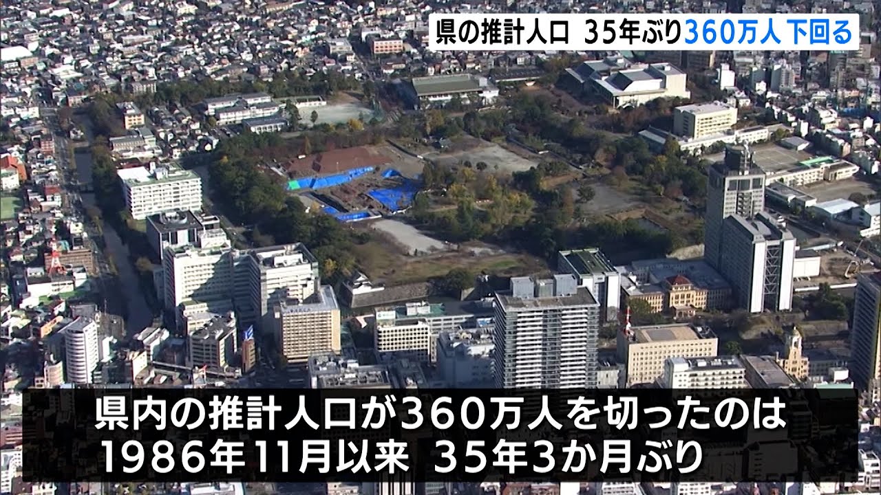 2月1日時点の静岡県内の推計人口は約359万人となり、1986年以来、約35年ぶりに360万人を下回りました。