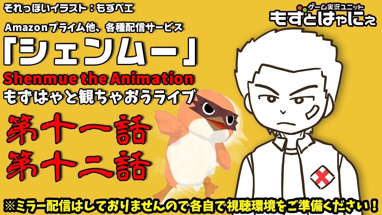 Amazonプライム他、各種配信サービスで配信がはじまった「Shenmue the Animation」をシェンムーが大好きなもずベエと同時視聴する生放送です!