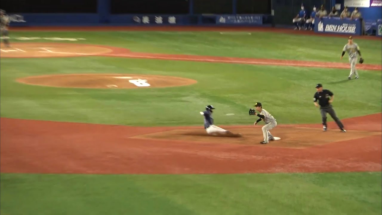 スタンドがどよめく、ライトフライから二塁へタッチアップする森敬斗 横浜DeNAベイスターズ 2022/6/28
