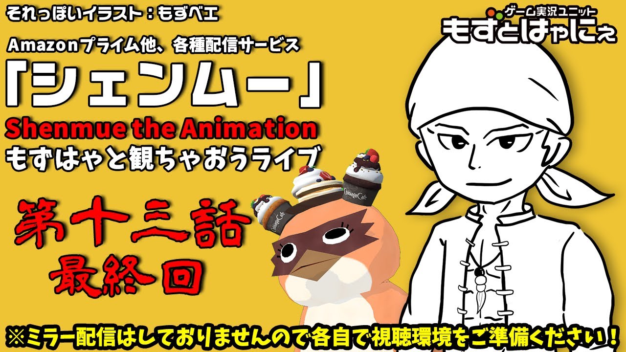 Amazonプライム他、各種配信サービスで配信がはじまった「Shenmue the Animation」をシェンムーが大好きなもずベエと同時視聴する生放送です!