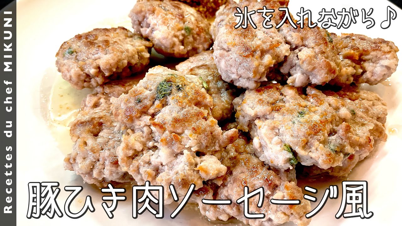 ソーセージは羊の腸などに詰めますが、お家ではぺったんこのハンバーグの様な形でも!手の熱で脂が溶けてしまわないように、氷を入れて練ります!強めの塩で味付けしてお弁当にも出来そうです♪ぜひ、お試しください。
