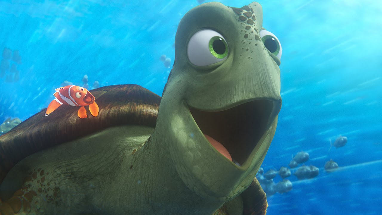 映像は約1分で、クラッシュがニモとドリーとマーリンをカリフォルニアに連れて行く内容。激しい海流に酔ったマーリンに「最高だろー!」とお構いなしで海を泳いでいくクラッシュの姿を見ることができる。