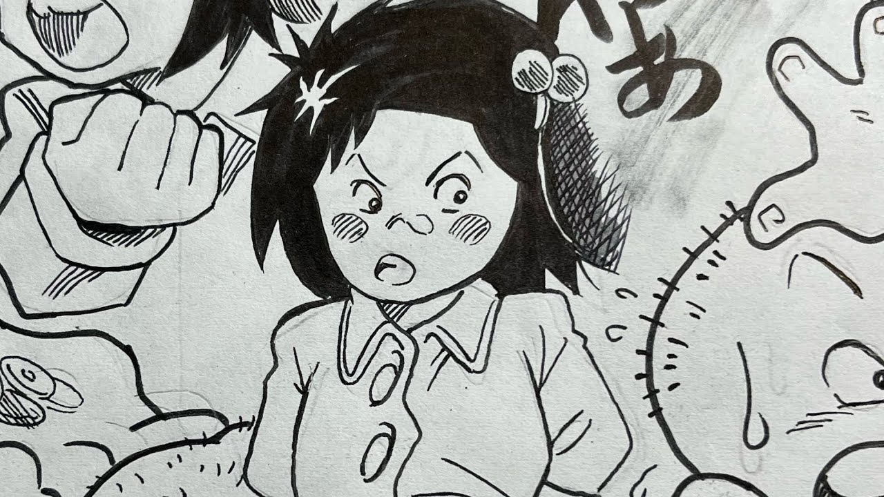 0:36〜ネタが割れててもギリギリまでチエちゃんの顔見せない!顔出しした瞬間に観てる側が「子供やん!?」ってびっくりした方が映画に引き込まれるのになぁってイメージして描いてました。