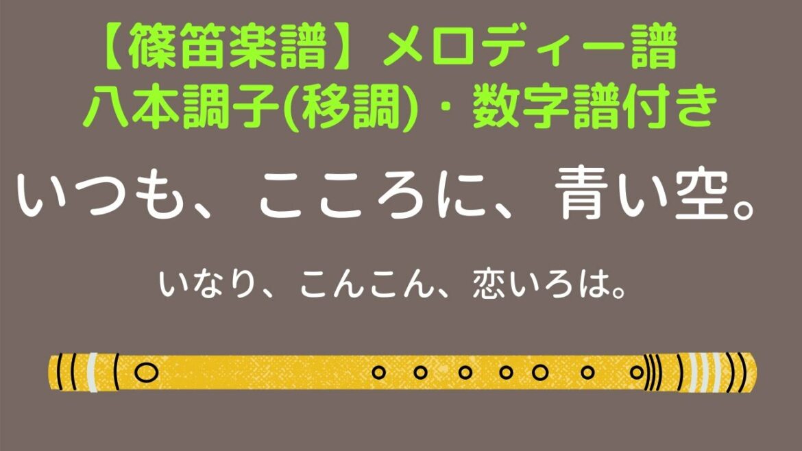 アニメ「いなり、こんこん、恋いろは。」より「いつも、こころに、青い空。」の篠笛譜(数字譜)です。フルート音源の自動演奏が流れます。