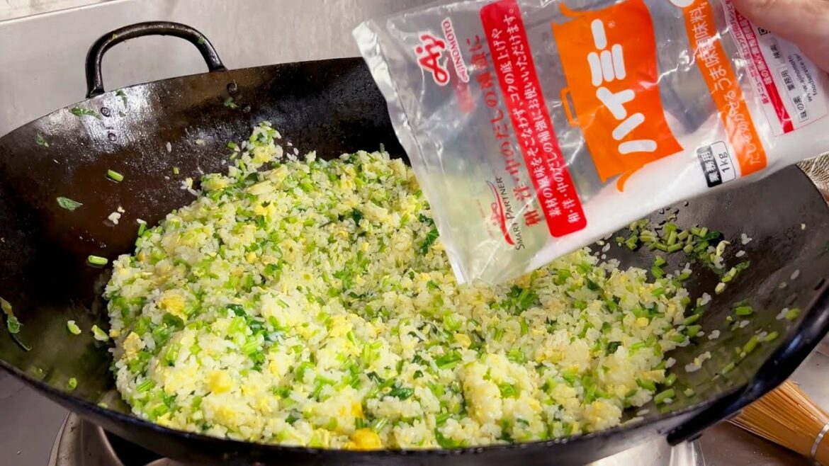 今日は昆布由来の「グルタミン酸ナトリウム」の他に、かつお節のうま味成分「イノシン酸ナトリウム」と、干し椎茸のうま味成分に含まれる「グアニル酸ナトリウム」を複合した画期的な調味料「ハイミー」で味をキメたほうれん草の炒飯です。