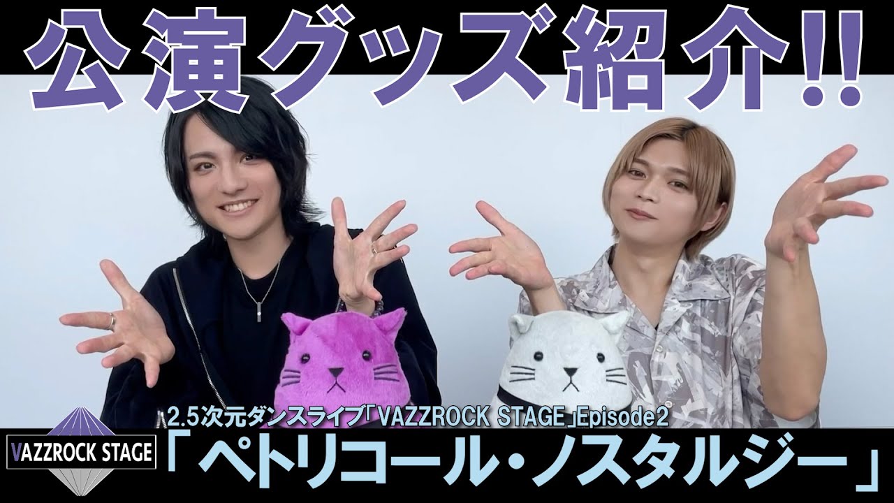 VAZZY 眞宮孝明 役 坂口実成夢さん&ROCK DOWN 小野田 翔 役 三橋かおるさんによるEpisode2「ペトリコール・ノスタルジー」の公演グッズをご紹介する動画です!