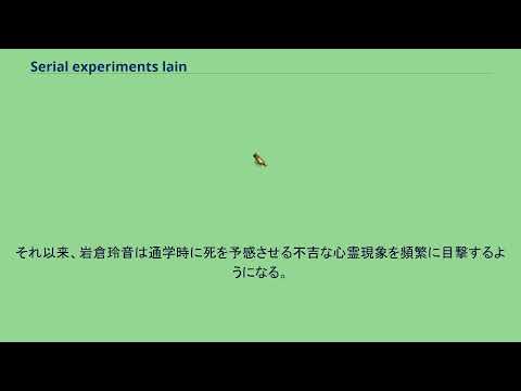 分析心理学の創始者、カール・グスタフ・ユングが提唱した集合的無意識の化身”lain”がワイヤードを介して現実世界を侵食するというサイコホラー的な作品である。