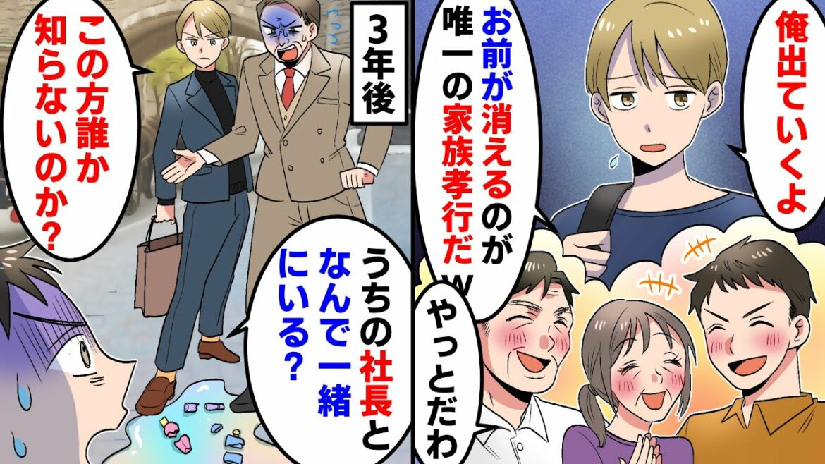 こんにちわ〜スカッとツインズだよ=(^.^)=今回のお話はこんな感じ内容だよっ⇨兄ばかり溺愛する両親と中卒の俺を見下す大卒の兄「底辺は恥さらし!今すぐ消えろw」→夢を叶えるため実家を出て数年後、思わぬ場所で家族を会うとストーリだよ!
