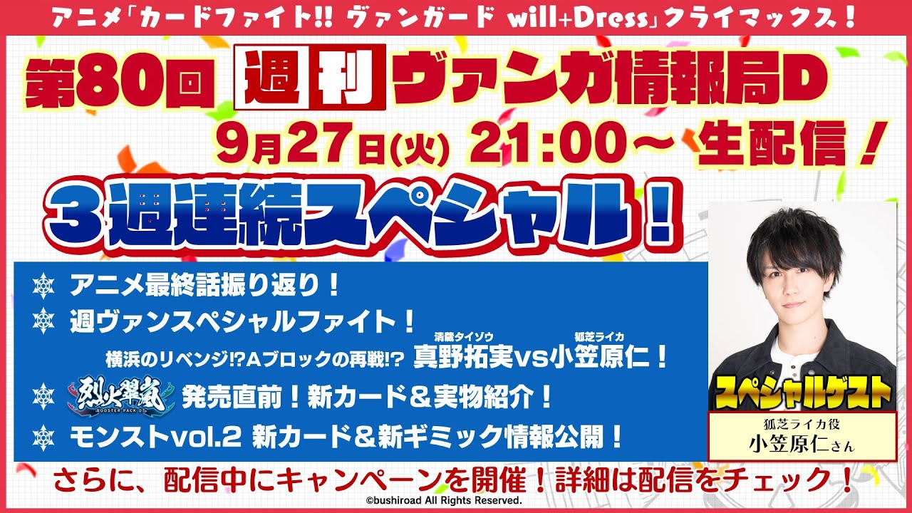 アニメに関するお話や、最新カード情報、イベント情報など、「カードファイト!! ヴァンガード」のあらゆる最新情報をお届けする番組!