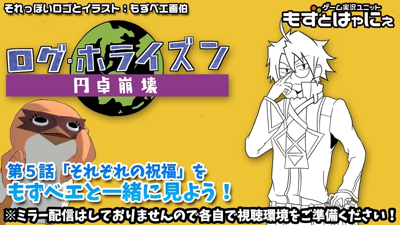 毎週水曜日19時25分からNHKで放送される「ログ・ホライズン 円卓崩壊」をもずベエと一緒に視聴しようぜ!という企画です。録画してる方は画面内のタイムコードを参考に同時再生してね!