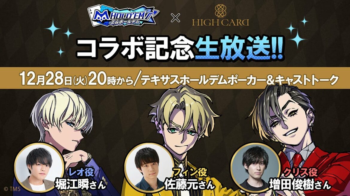 「HIGH CARD」とテキサスホールデムポーカーが無料で遊べるアプリ「m HOLD’EM(エムホールデム)」がコラボ記念生放送を12月28日20時から実施!