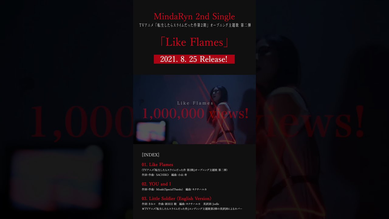 TVアニメ『#転生したらスライムだった件 第2期』第2部のオープニング主題歌となっている”Like Flames”のMusic Video が100万回再生を突破!🎊