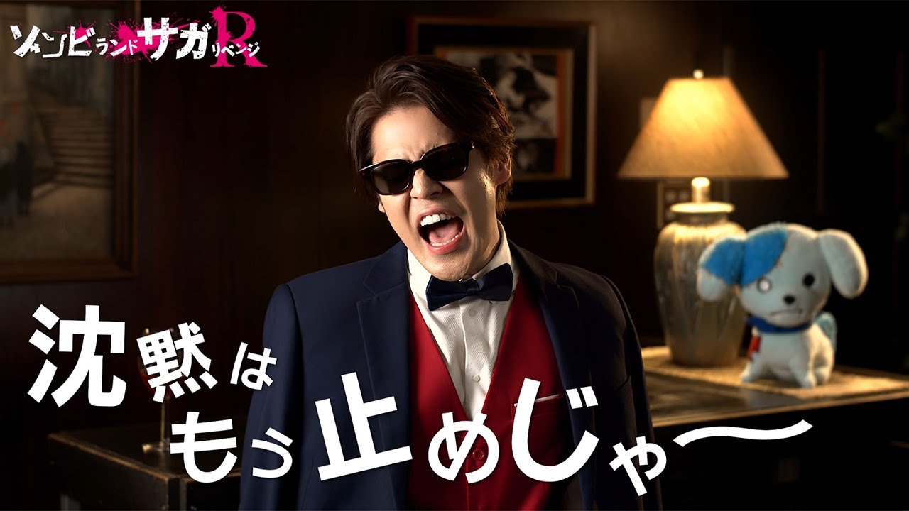 宮野さんは、巽幸太郎をイメージしたスーツ、サングラス姿で登場。「巽幸太郎役を務めました宮野真守です。いや、むしろ。巽幸太郎です」とハイテンションに自己紹介し、「これまで、ゾンビランドサガ リベンジはあえて沈黙を続けてきました。が、しかし!沈黙はもうやめじゃ~い! 重大発表を行うんじゃ~い!」と語った。