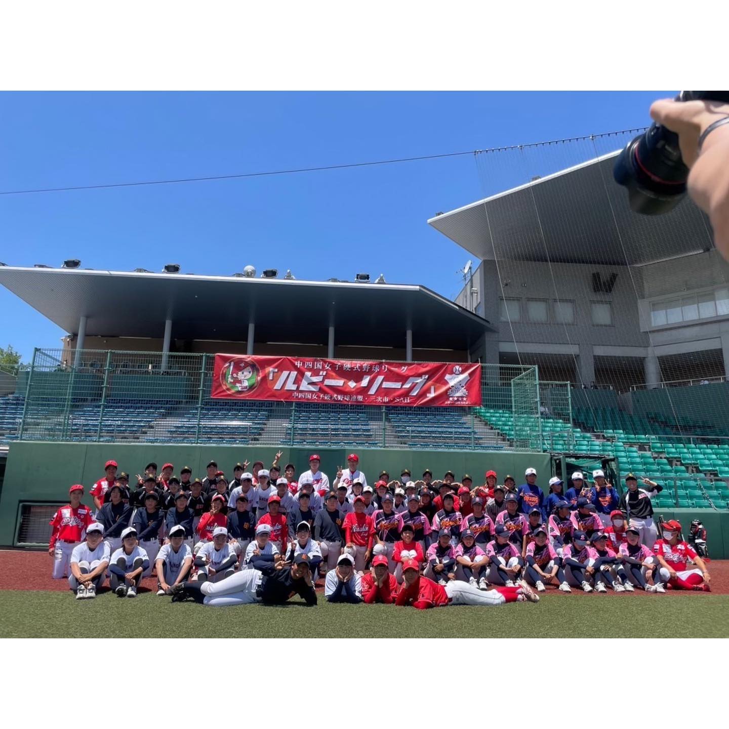 昨日、第1回ルビー・リーグ女子野球教室が三次きんさいスタジアムで開催され、浅井さんと行ってきました!