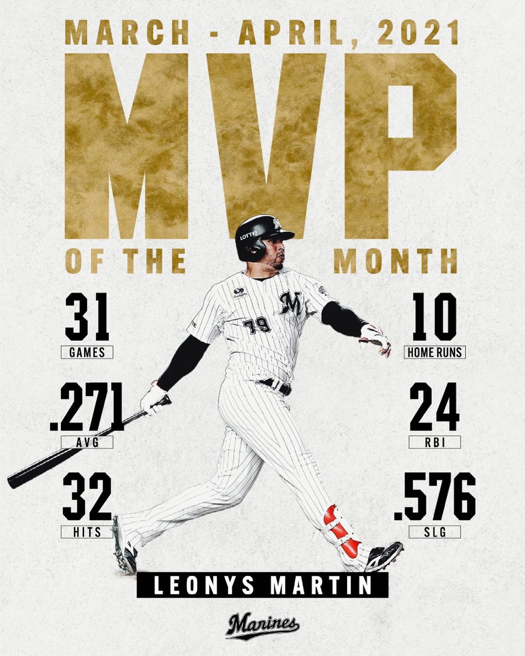 2021年3、4月度の「大樹生命月間MVP賞」が発表され、パ・リーグ打者部門で #レオネス・マーティン 選手が初受賞しました。おめでとうございます!