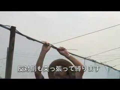ブルーベリー園の防鳥網張り