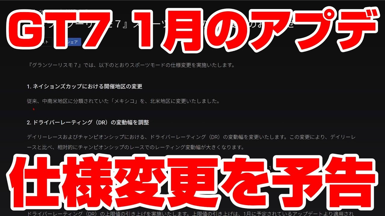 1月はDR改定アプデと一緒にクルマ追加アプデが来るのか?それとも別々なのか?